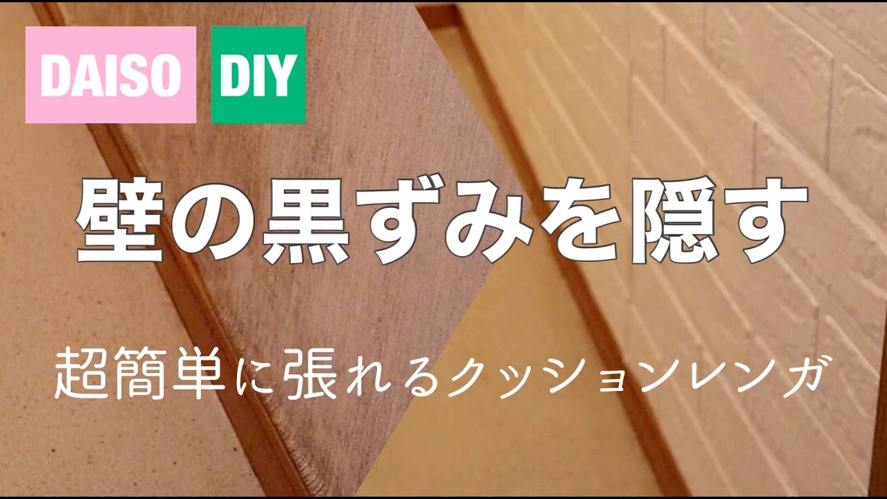 タイトル【100均DIY】壁の染みをクッションレンガシートで隠しら驚くほど綺麗に!