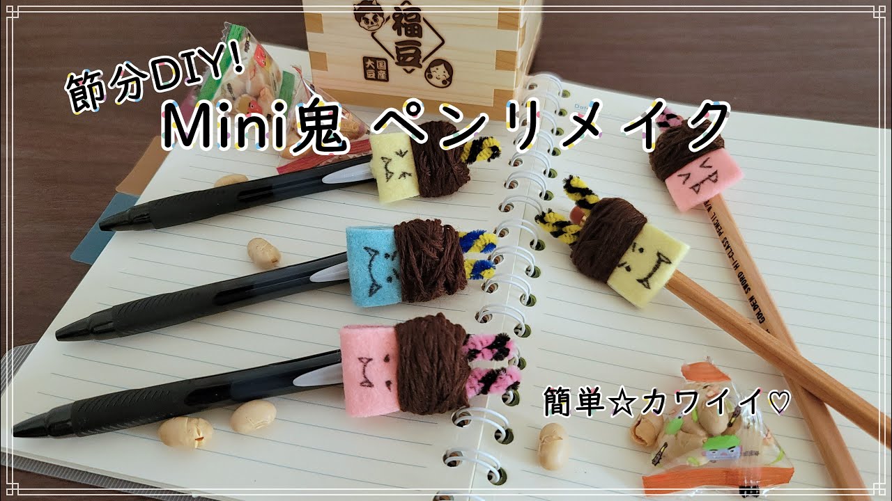 | タイトル | 【工作レク】【100均DIY】節分工作!Mini鬼ペンリメイク【クラフトVlog】夫のお尻が大変だって⁉ |