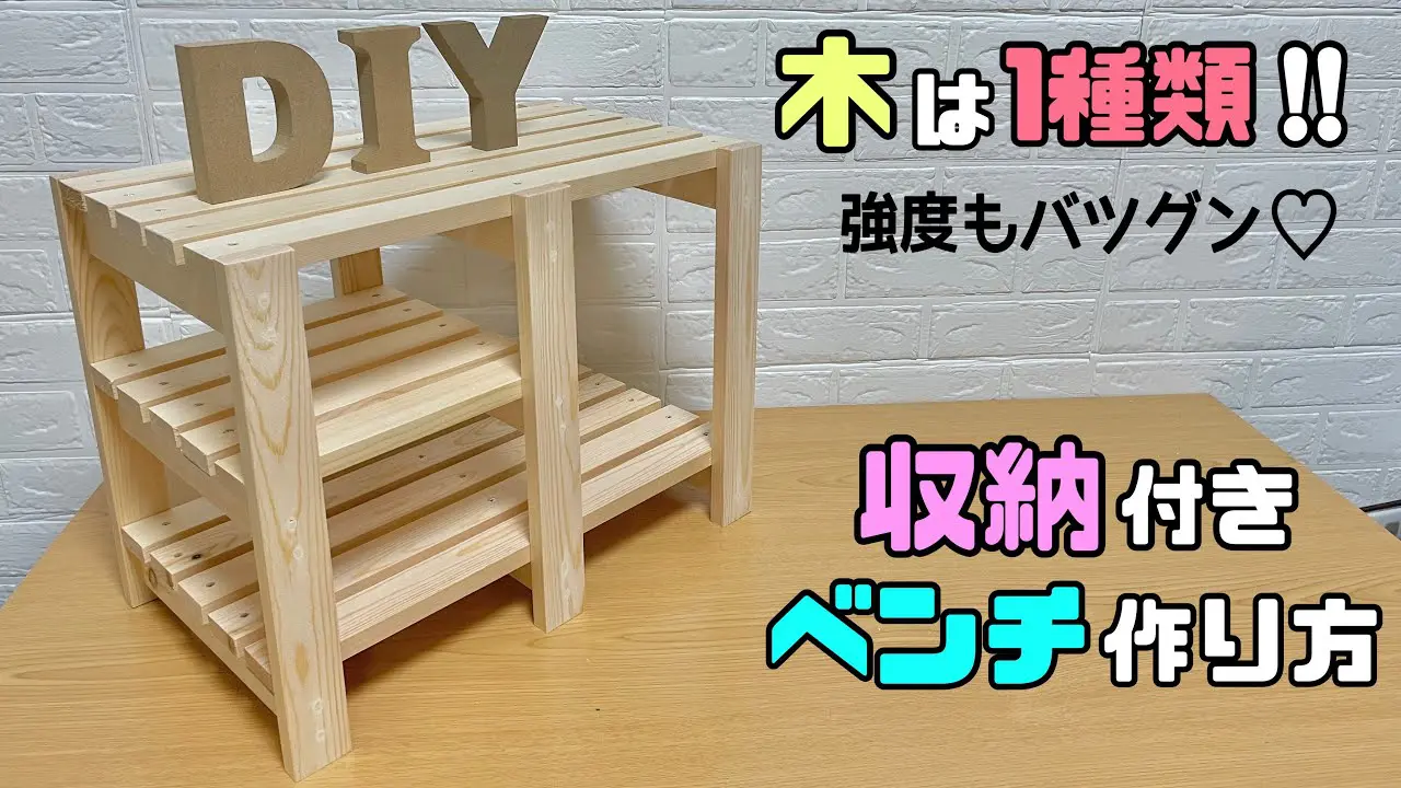 | タイトル | 【DIY】【収納】【ベンチ】【収納付き棚】1種類の木だけで作る!!強度バツグンで棚としてもベンチとしても使える!!コツやポイントもありの職人技!!#diy #収納 #棚#ベンチ #100均diy |