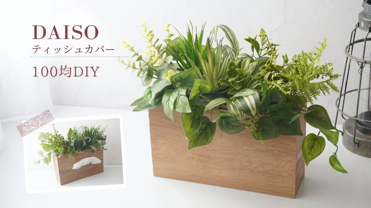 | タイトル | 【全部ダイソー】ティッシュカバーを造花グリーンでおしゃれなインテリアにDIY/フェイクグリーンアレンジメントの作り方/100均で簡単手作り |