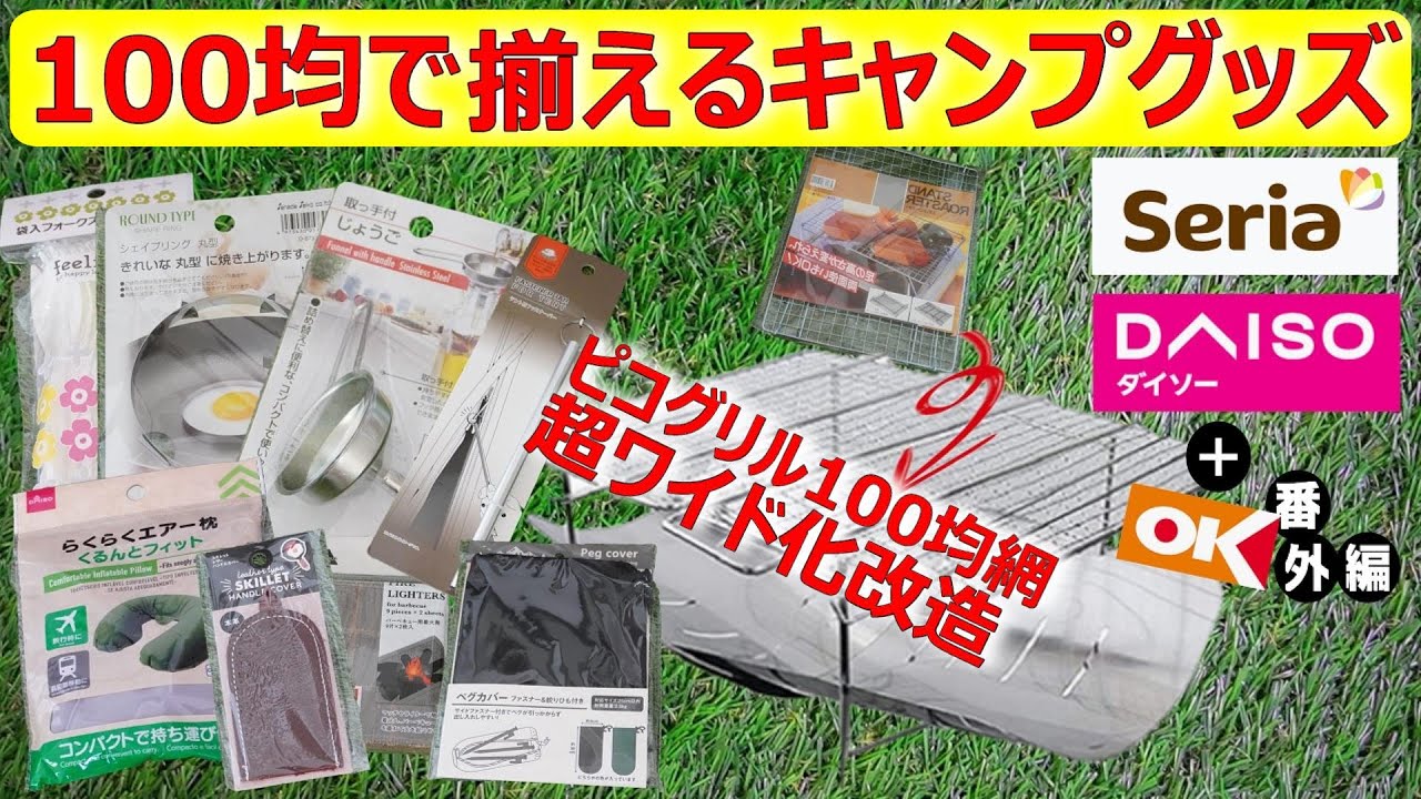 | タイトル | 100均で揃えるキャンプグッズ ピコグリル100均網超ワイド化改造など便利グッズが満載 旅行コーナー、料理コーナーのキャンプに使える商品も厳選 DIY ダイソー セリア |