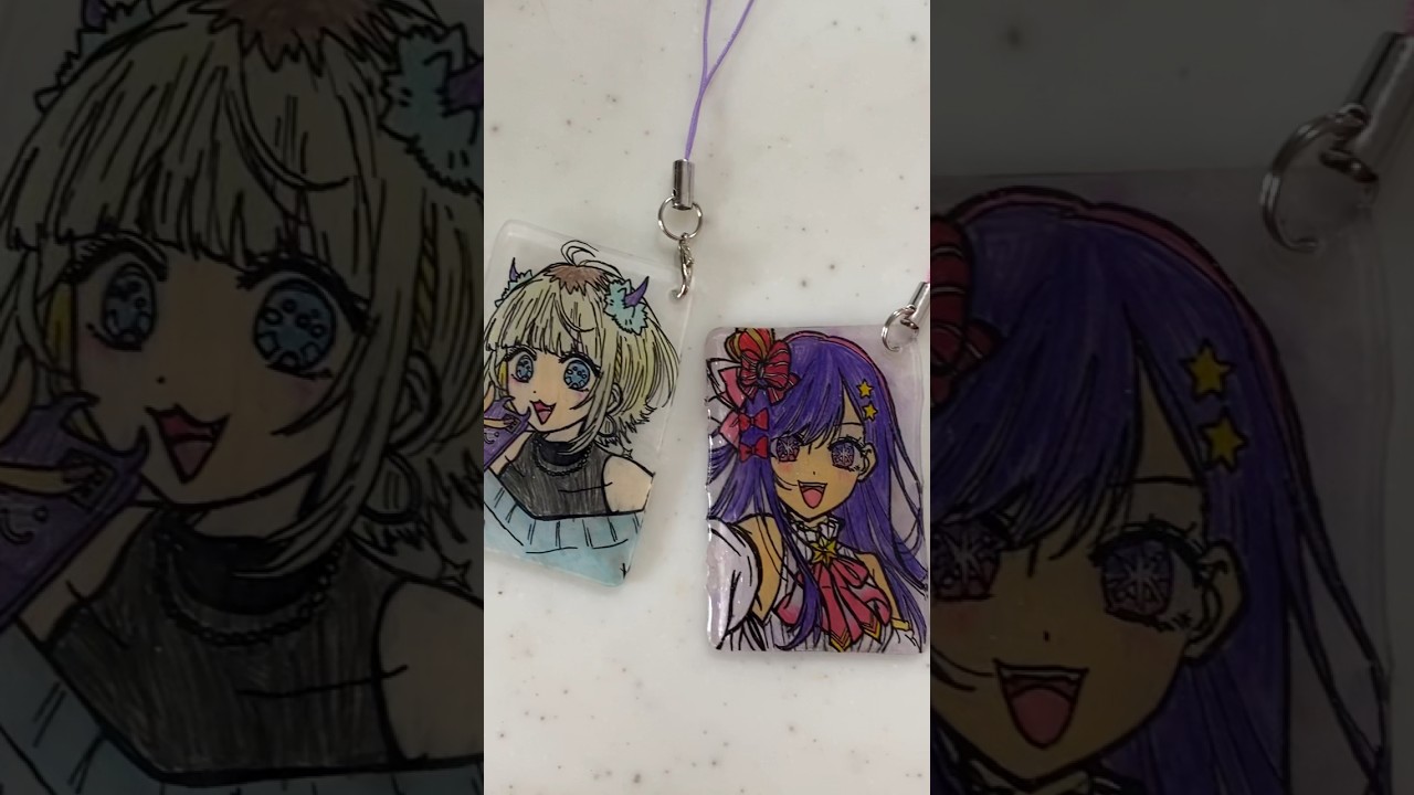 | タイトル | 推しの子キーホルダー作り⭐︎100均プラ板で描いた絵を小学生一年生と五年生が頑張って色塗りしたよ!簡単にキーホルダーが作れてお気に入り |