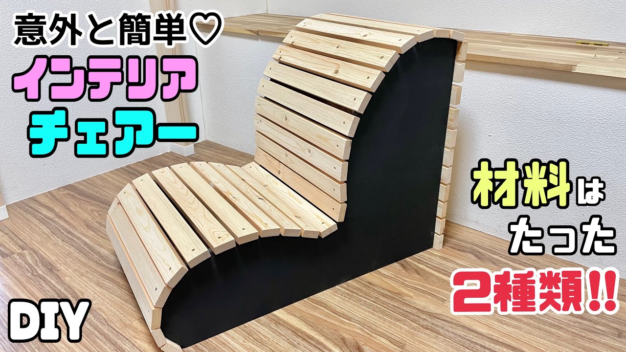 説明文【DIY】【椅子】【インテリア】インテリアにもなるオシャレな椅子の作り方!!難しく感じるデザインチェアーが意外と簡単にできる!!幅を広げて2人掛けもお好みでできる!!効率よく仕上げる方法!!#diy ...