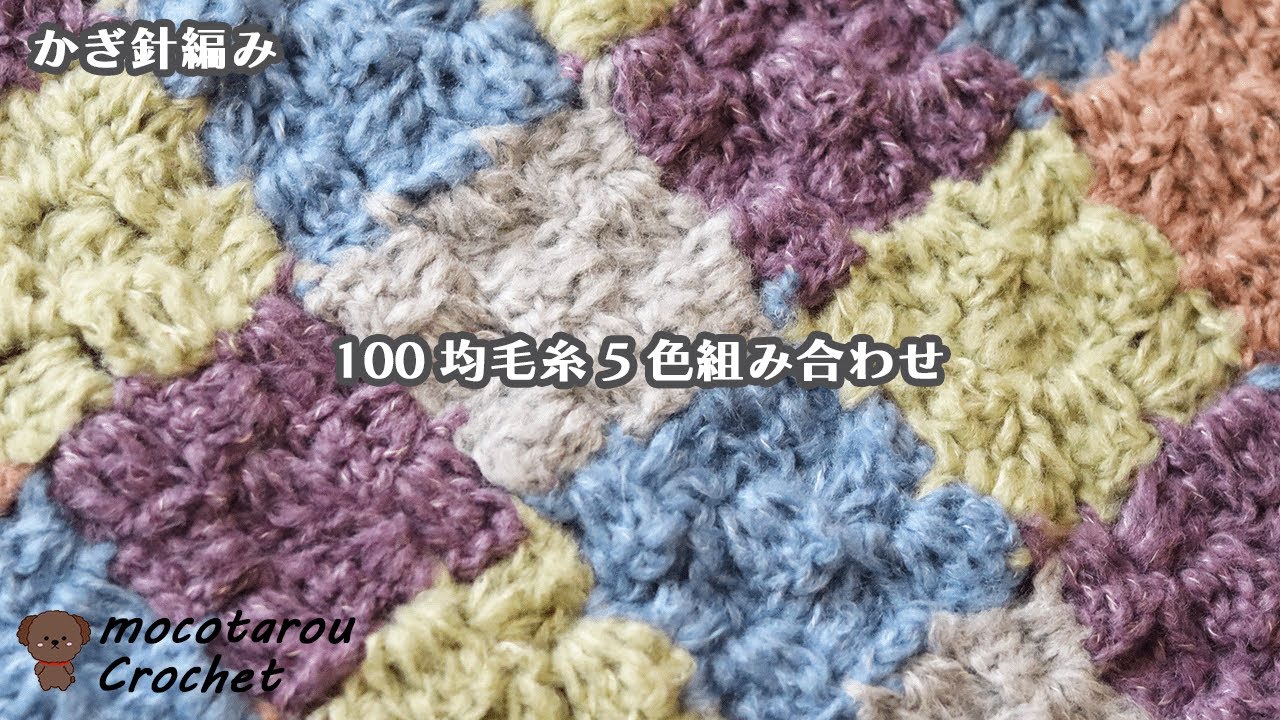 | タイトル | 【新旧100均モヘア糸】5色組み合わせて長方形のひざ掛け編んでみました。かぎ針編み |