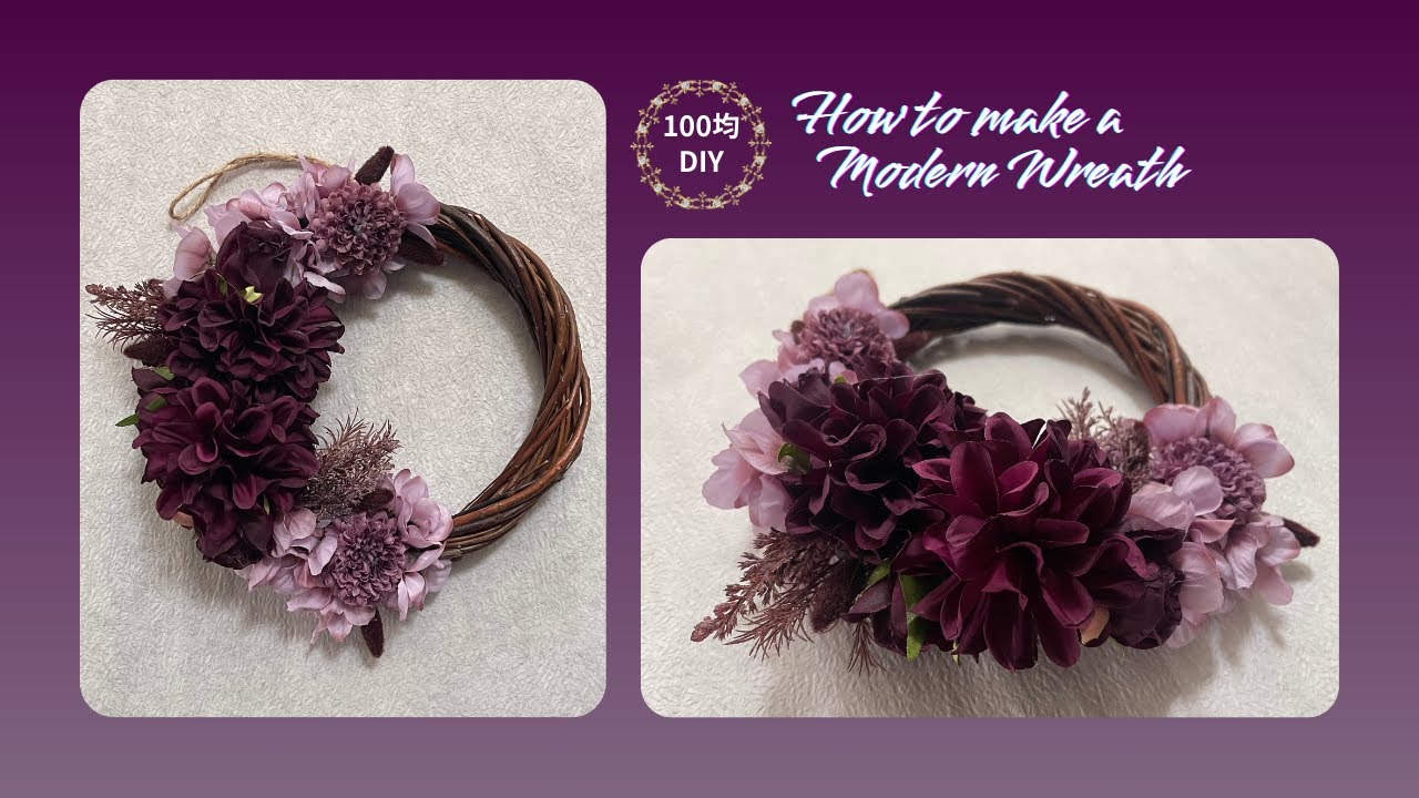 タイトル【100均DIY】アンティーク調ワインカラーのモダンな冬リースを作りました【セリアだけ】