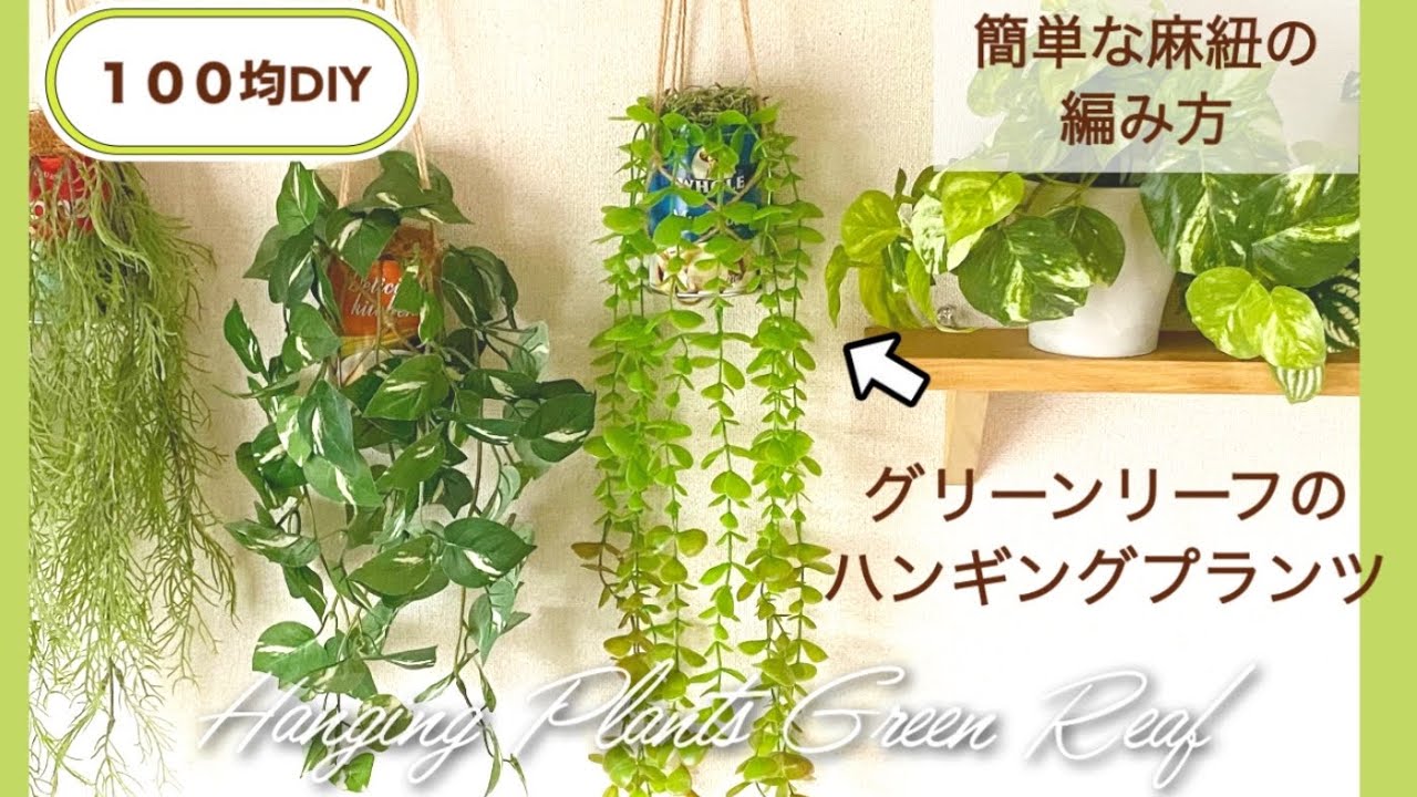 タイトル【100均DIY】グリーンリーフのハンギングプランツ・ブリキ缶 簡単!麻紐のハンギングプランターの作り方 簡単に編める!セリア・ダイソー
