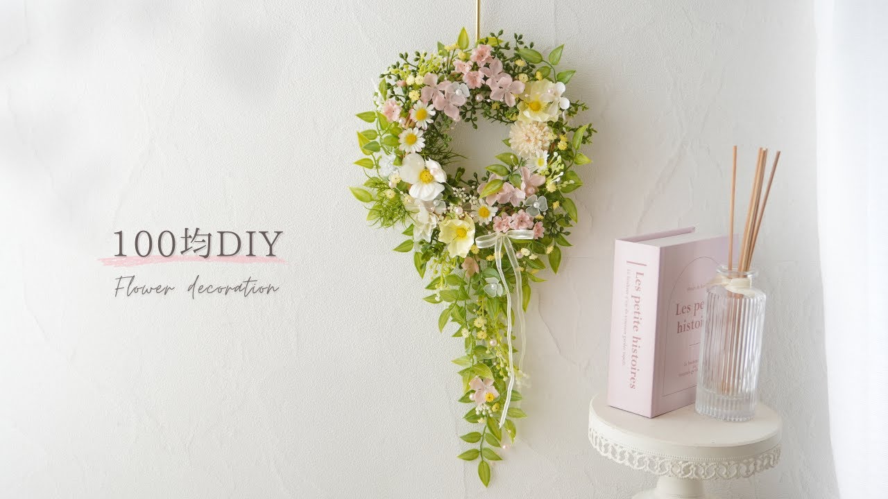タイトル【100均造花】春色リースの作り方/かわいい小花でナチュラルな手作りインテリア