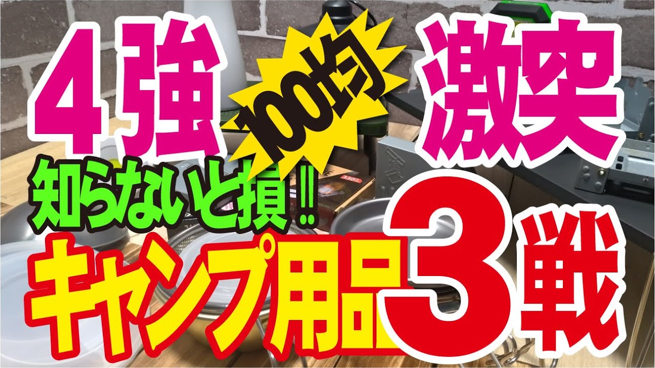 タイトル【100均4強激突! 】キャンプ用品3戦プラス2選