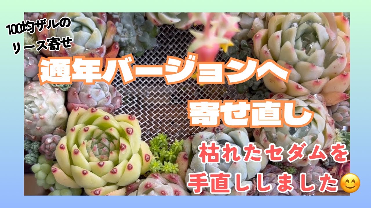 | タイトル | #73 『多肉植物』100均ザルのリース寄せ通年バージョンに寄せ直し |
