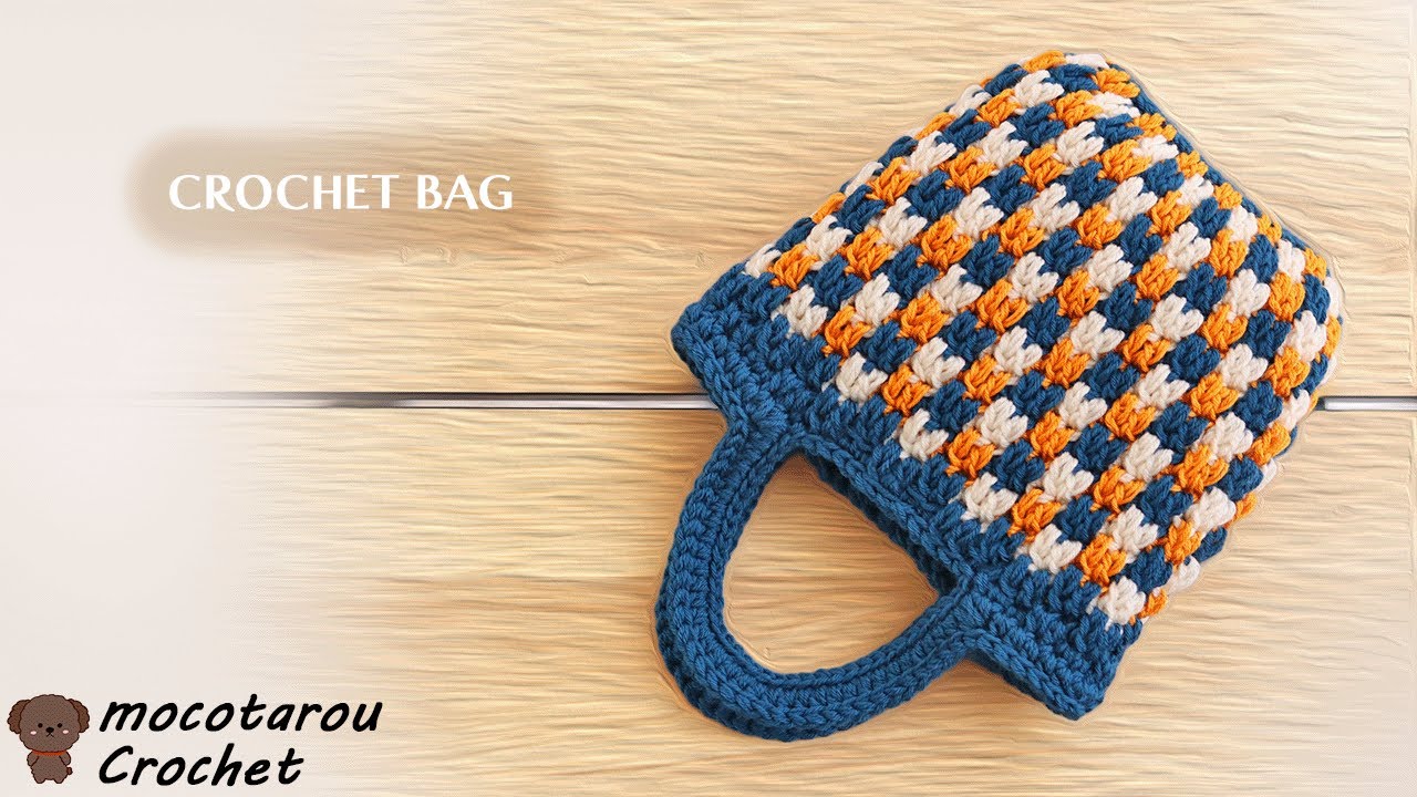 | タイトル | 100均糸を3色使って模様編みのお散歩バッグの編み方。かぎ針編み |