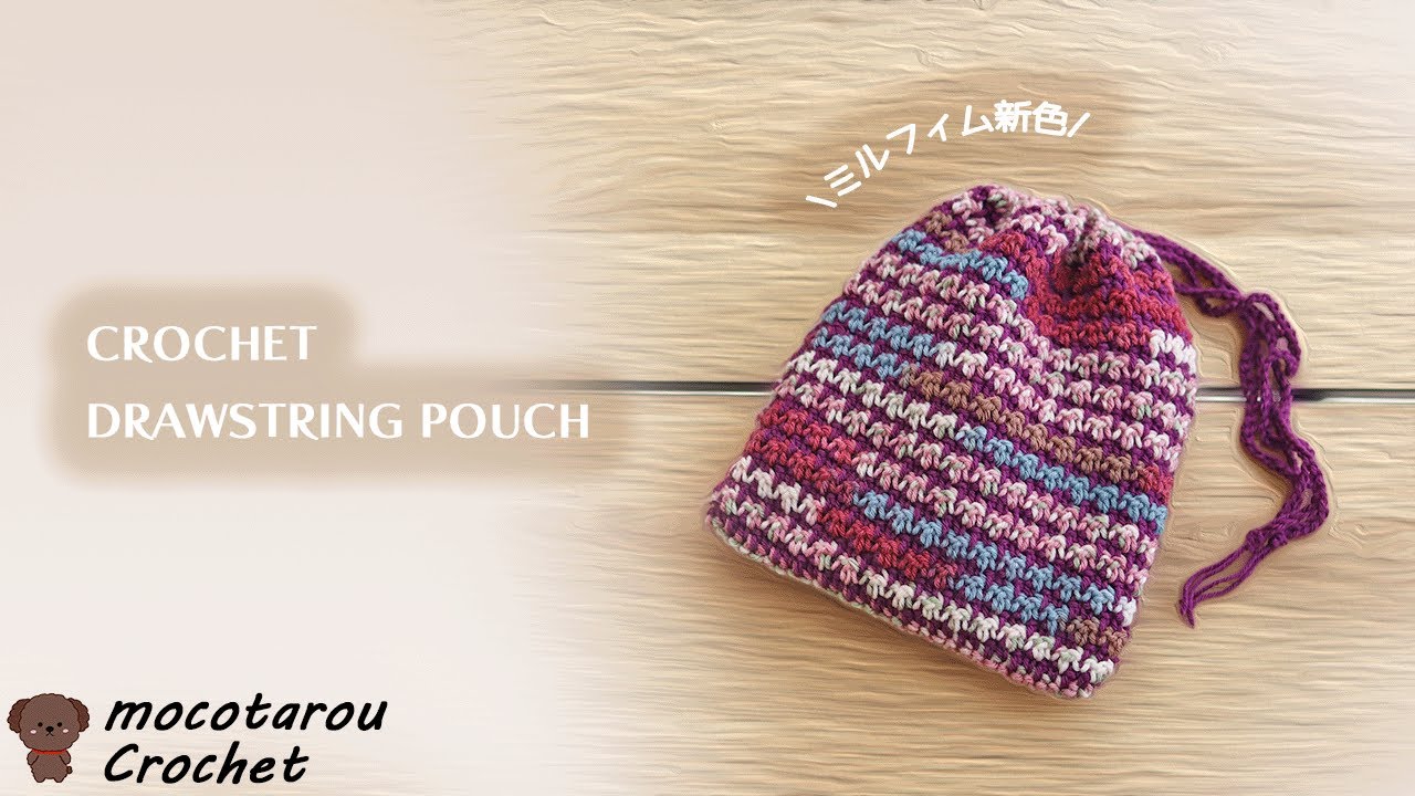 | タイトル | 【100均糸】簡単、ポチポチ模様で巾着ポーチの編み方。かぎ針編み |