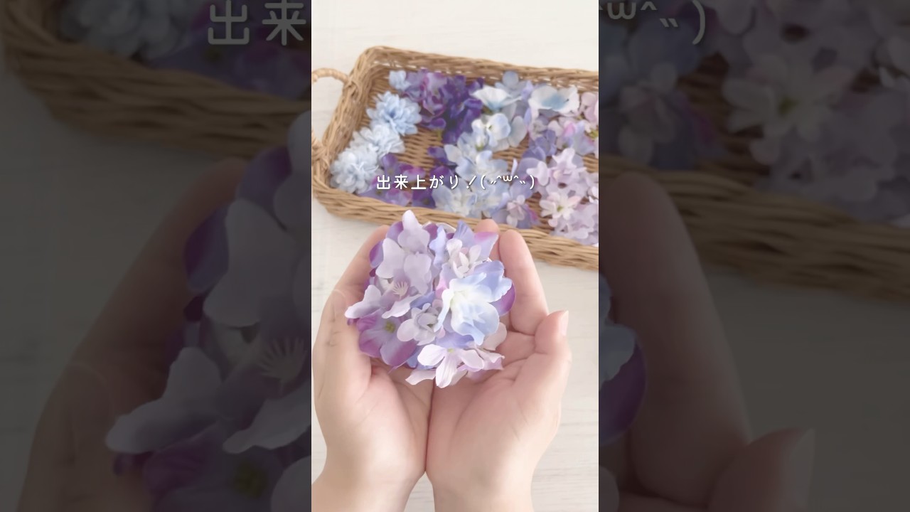 説明文100均の造花を使って、フラワーアレンジメントを作ってみました!-材料-・太めのリボン・花が小さめの造花(動画ではライラック、あじさい、デルフィニウム、スプレーマムを使用)・厚手の両面テープ・工作バサ...