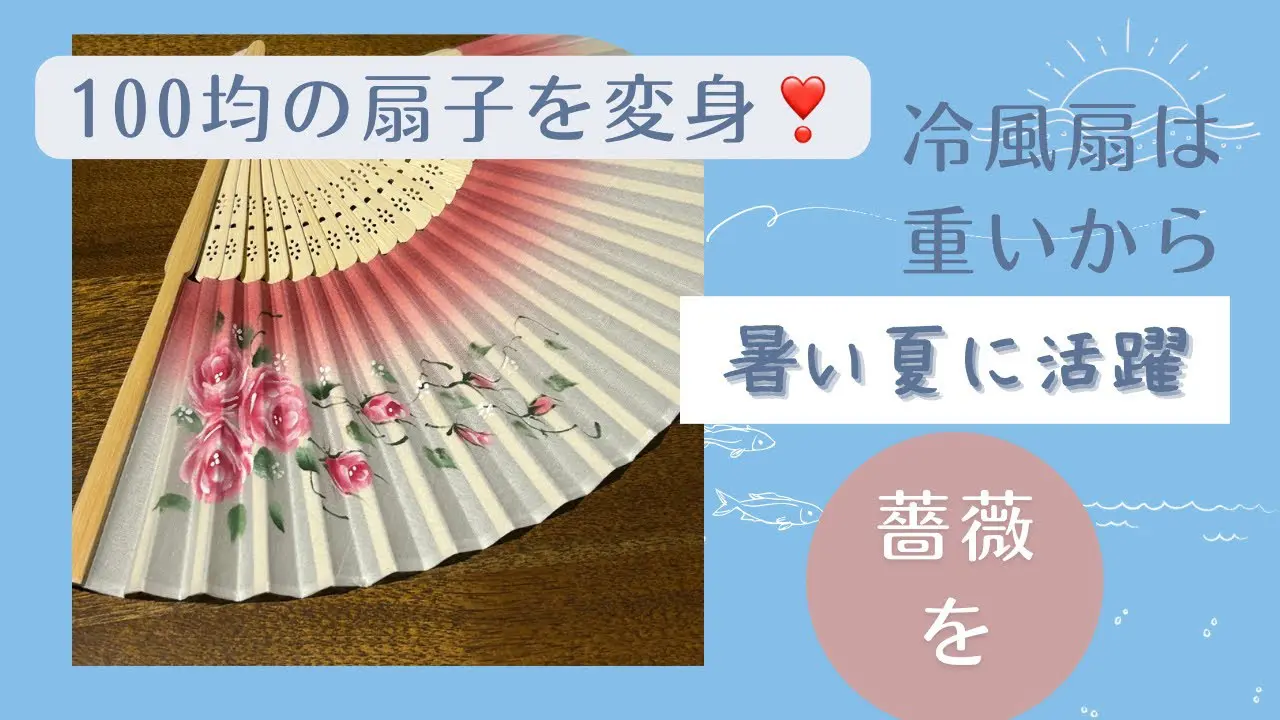 | タイトル | 【100均の扇子】にバラを描いて変身❣️みんな冷風扇持ってるけど折り畳みできて軽い扇子は必需品。#vlog #ハンドメイド #趣味 #リメイク #100均 #100均diy #扇子#扇風機#ダイソー |