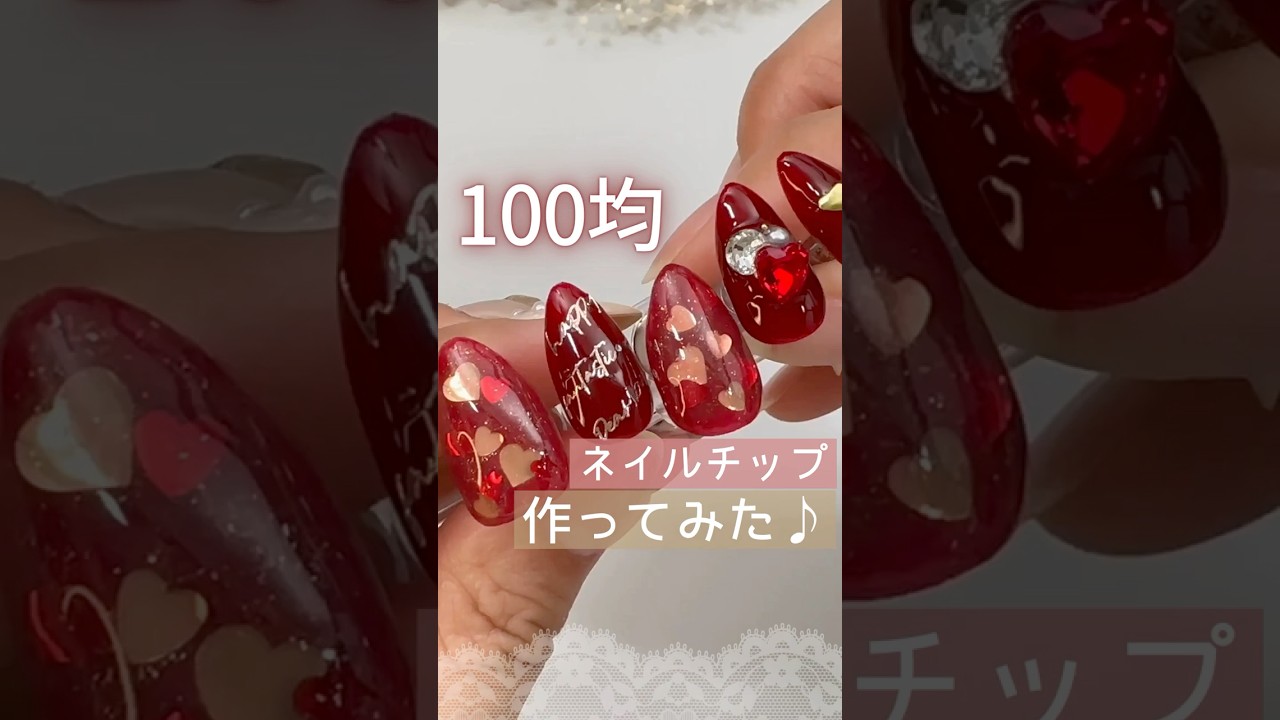 タイトル【100均】ネイルチップ作ってみた♡ハートホロ埋め込みバレンタインネイル♪ #バレンタインネイル #100均ネイル #ネイルチップ