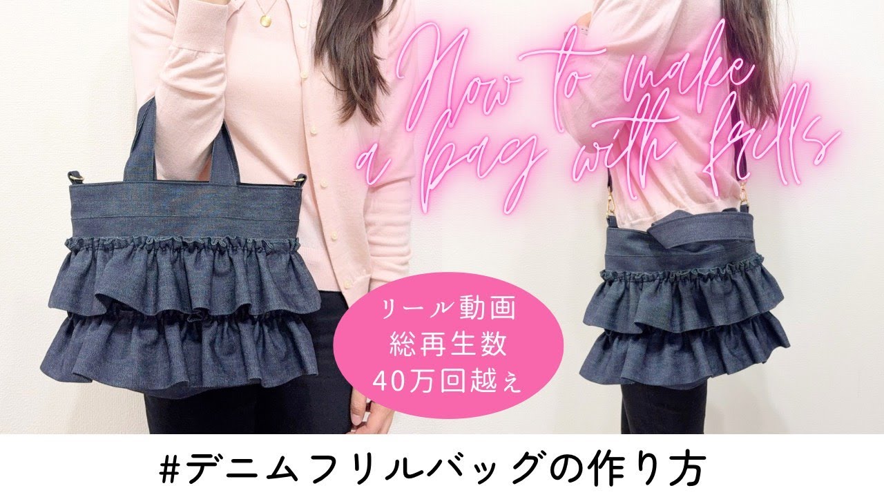 | 説明文 | 今回ご紹介するのはInstagramやTikTokでたくさんの反響をいただいているデニムフリルバッグの作り方です。今回使ったのは生地やさんの普通のデニムですがキャンドゥのデニムハギレでも作ることができ... |
