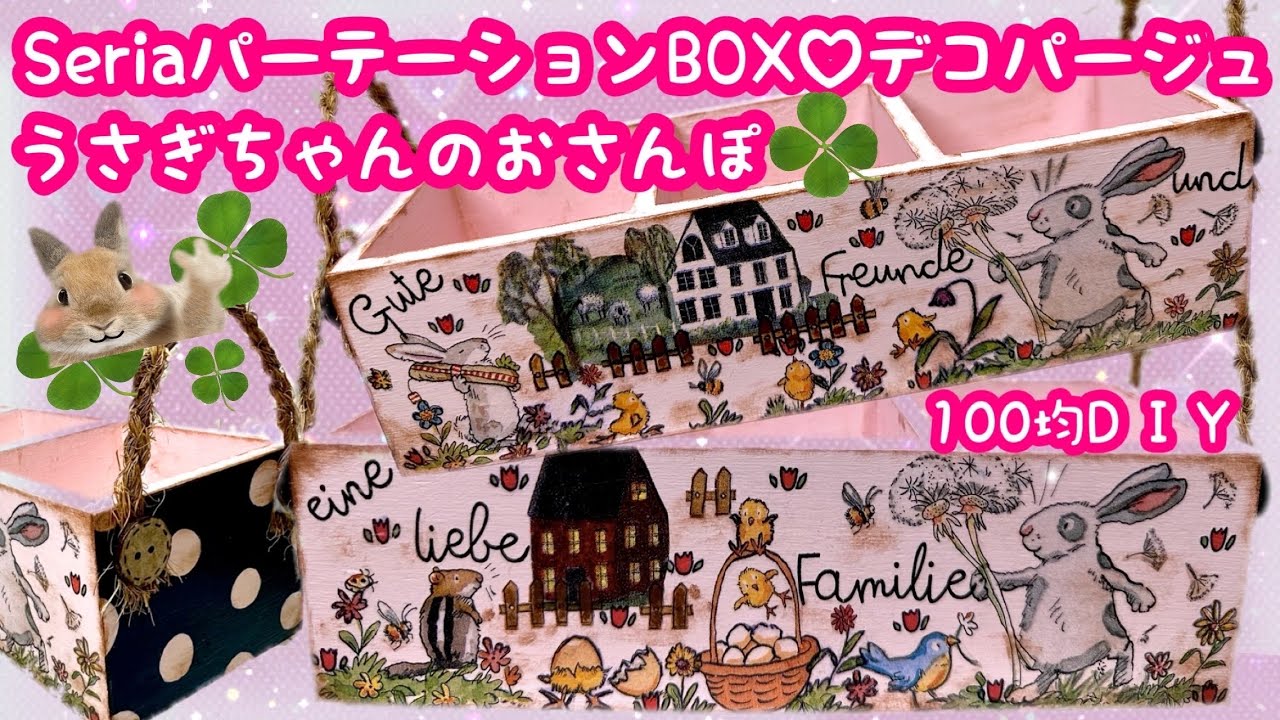 「100均D I Y」SeriaパーテーションBOX❤️デコパージュ😆うさぎちゃん達のおさんぽ🐰🌷🌷🌷#découpage#ハンドメイド#リメイク – Momoko Momoda