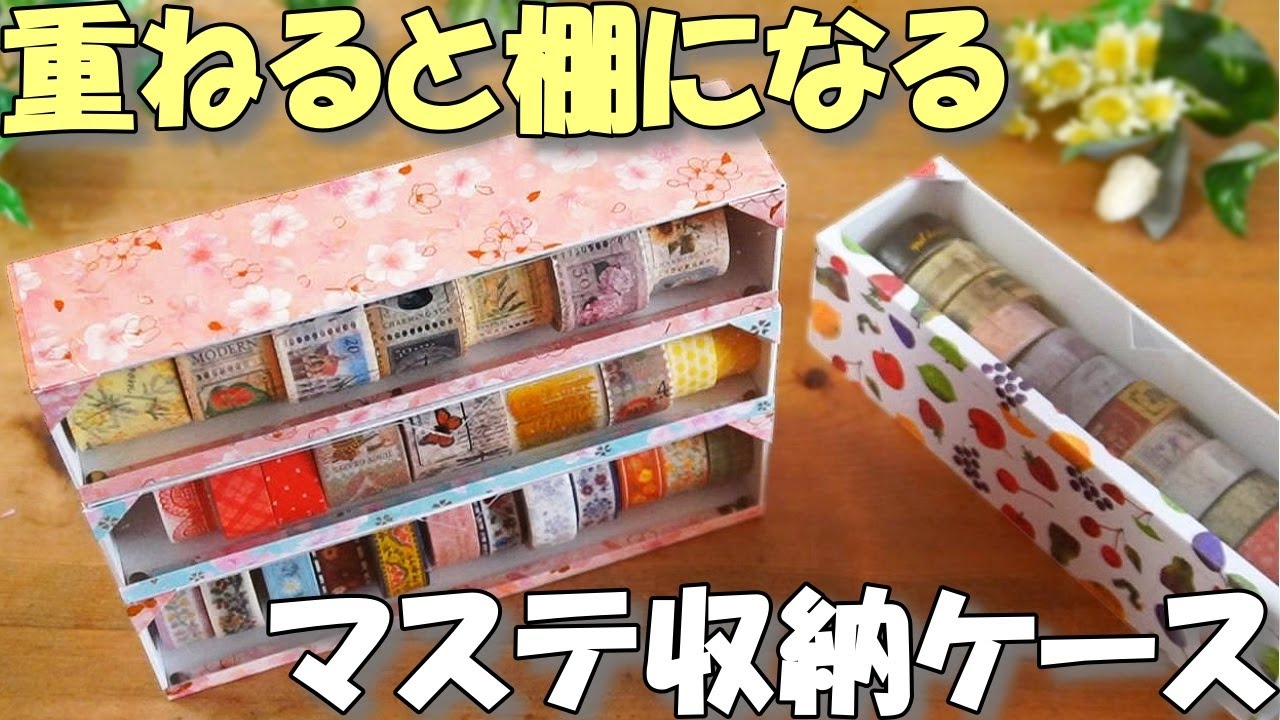 説明文マステ収納ケースの作り方動画です。100均素材で、スタッキングすると棚になるマスキングテープ収納ボックスを手作りします。蓋が付いているので埃が付かず、扉は一段ずつ開閉できて出し入れ簡単。転がりストッパ...