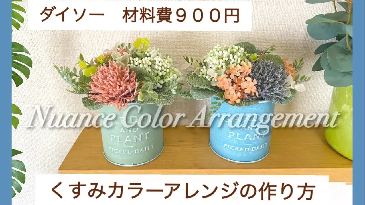 | タイトル | 【100均DIY】簡単!ニュアンスカラーのフラワーアレンジ ダイソー材料費900円 くすみカラー |