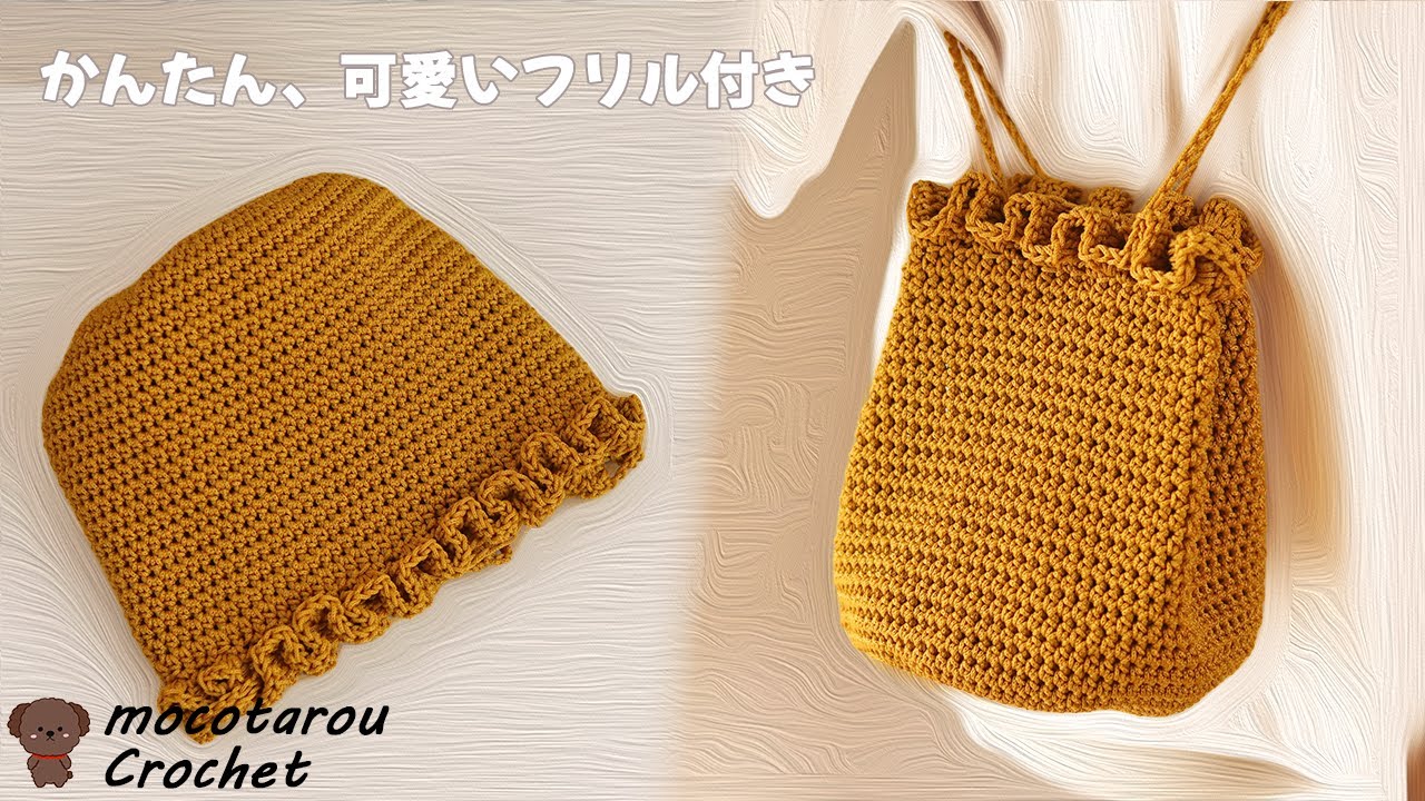 | タイトル | 【100均糸】簡単可愛いフリル付き斜め掛けポーチの編み方 かぎ針編み |