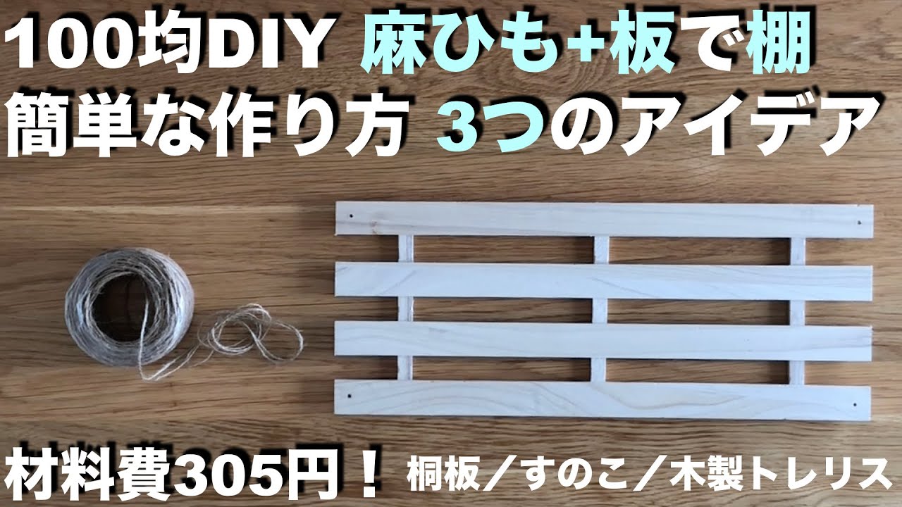 【DIY】100均の麻ひも+3種の板材でウォールラックを作成、簡単にできるDIYアイデア / 材料費305円!/スペース有効活用/ 100円均一活用 – ディーワイワイ DIYと音楽