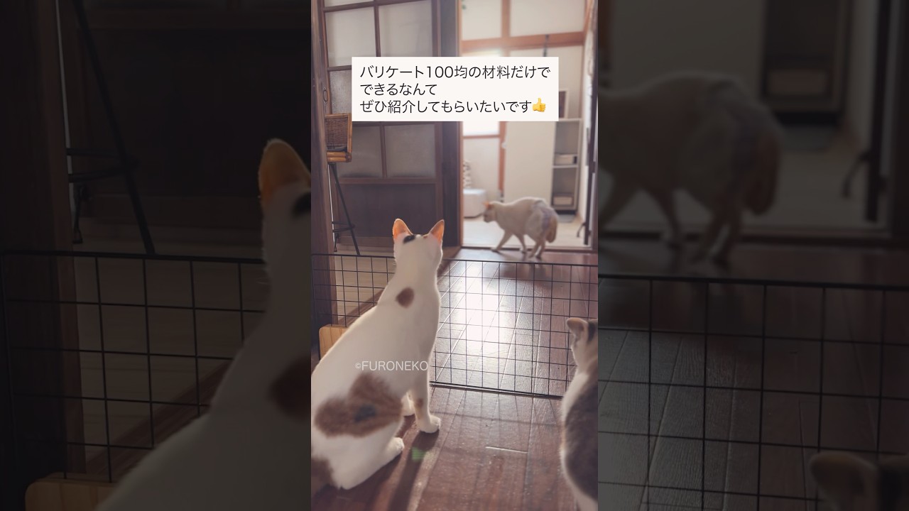 | タイトル | 合計700円。100均で作ったバリケード。随分前にリクエストもらってました!前のバージョンよりも工数少ないです☺️#老猫 #猫diy #フロネコ |