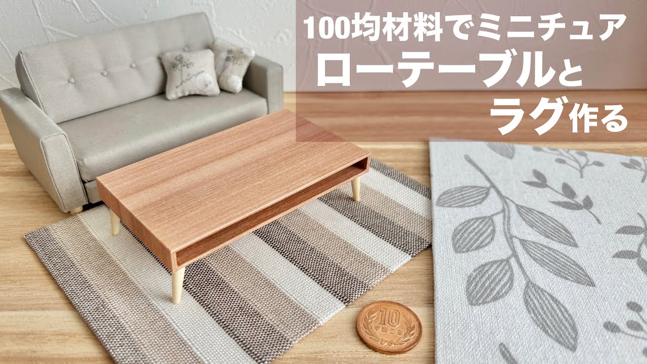タイトル【DIY】100均材料でミニチュアローテーブルとラグ作る【100均DIY】