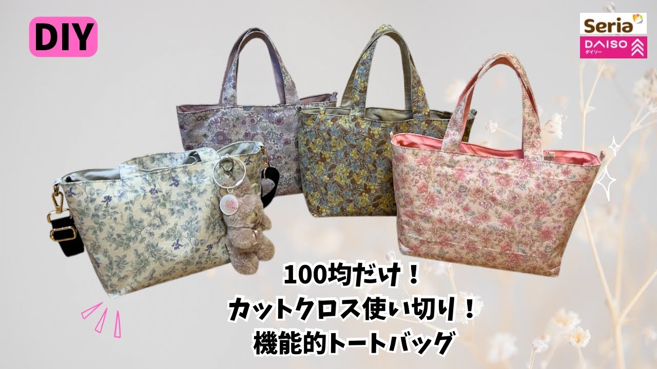 | タイトル | 【100均だけ】カットクロス使い切り❣️機能的トートバッグ✨A functional tote bag made from 5 pieces of 30 x 35 cm cut cloth! |