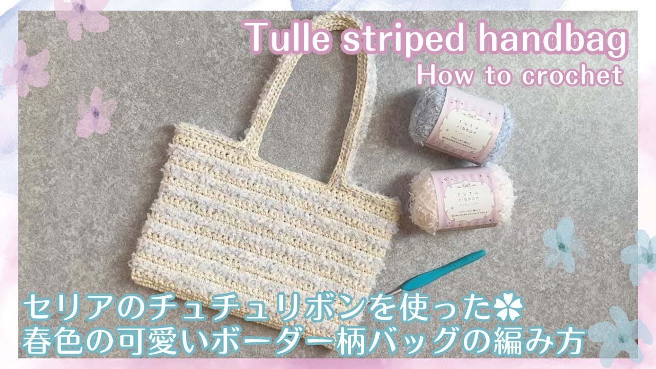 タイトル[チュール素材のボーダー柄ハンドバッグの編み方] #100均 #かぎ針編み #bag #crochetpattern #セリア #ダイソー #ボーダー #diy #tutorial