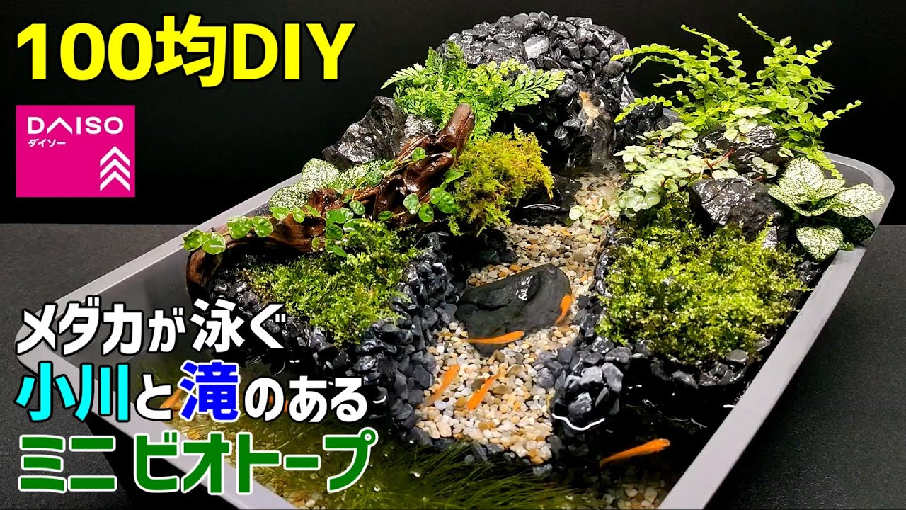 | タイトル | 【100均DIY】メダカが泳ぐ小川と小さな滝のある【ミニ ビオトープ】の作り方 /卓上ビオトープ/メダカ水槽 |