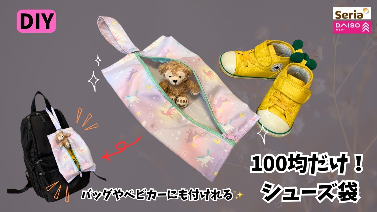 【100均だけ】簡単✨裏地なしシューズ袋❣️カバンやベビーカーにも付けられる✨ベビー用♡Easy! Shoe bag for toddlers – ハンドメイド研究室🔰