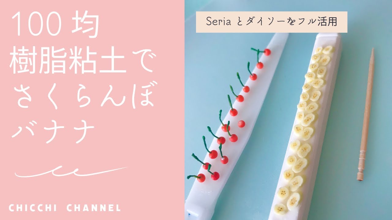 | タイトル | 初めての樹脂粘土、100均Seriaとダイソーをフル活用してめっちゃリアルなトッピング用フルーツを作ってみた【さくらんぼ・バナナ】編 |