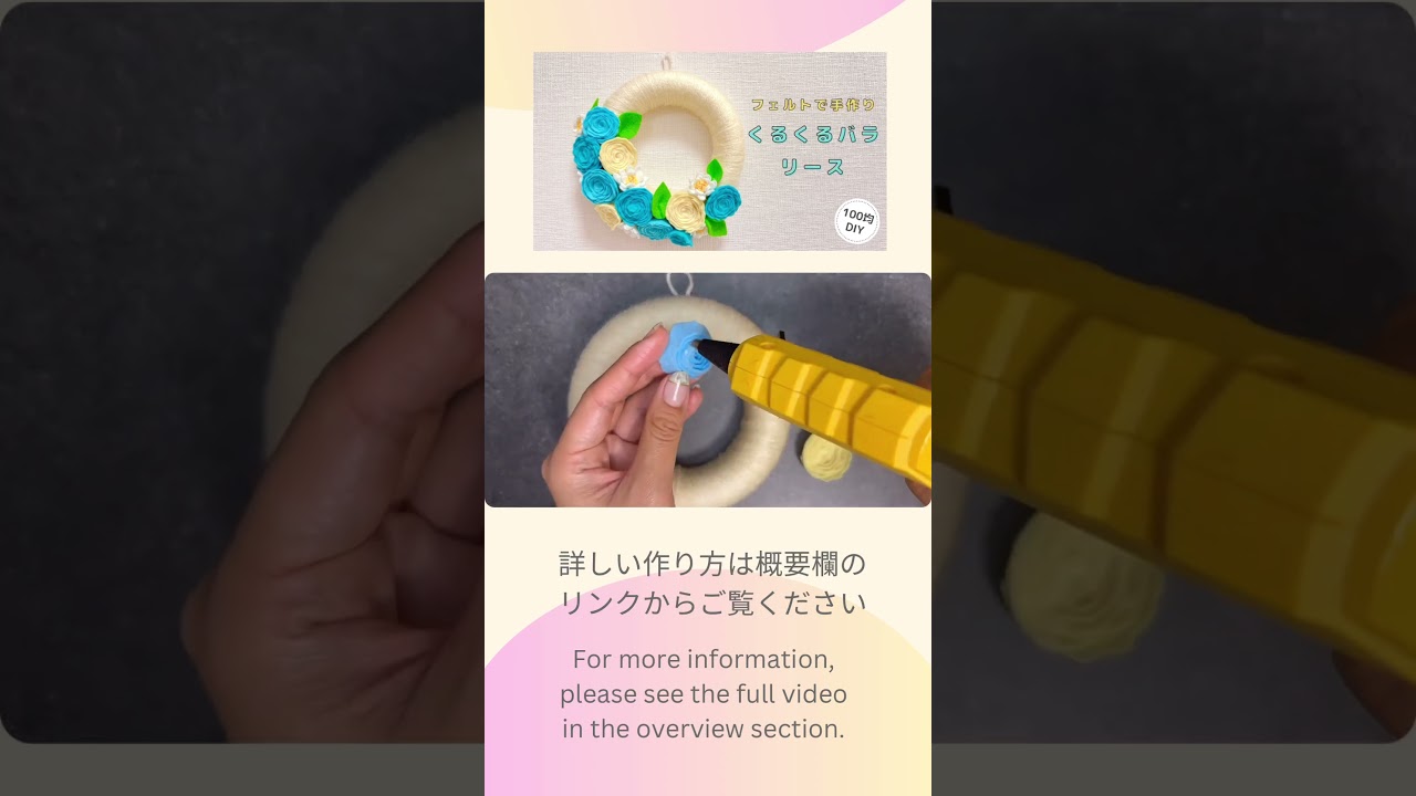 タイトル【100均DIY】フェルトで手作りくるくるバラリース#リース#父の日#バラ#薔薇#フェルトフラワー#100均diy#ハンドメイド#フェルト#felt#rose#lease#feltflower