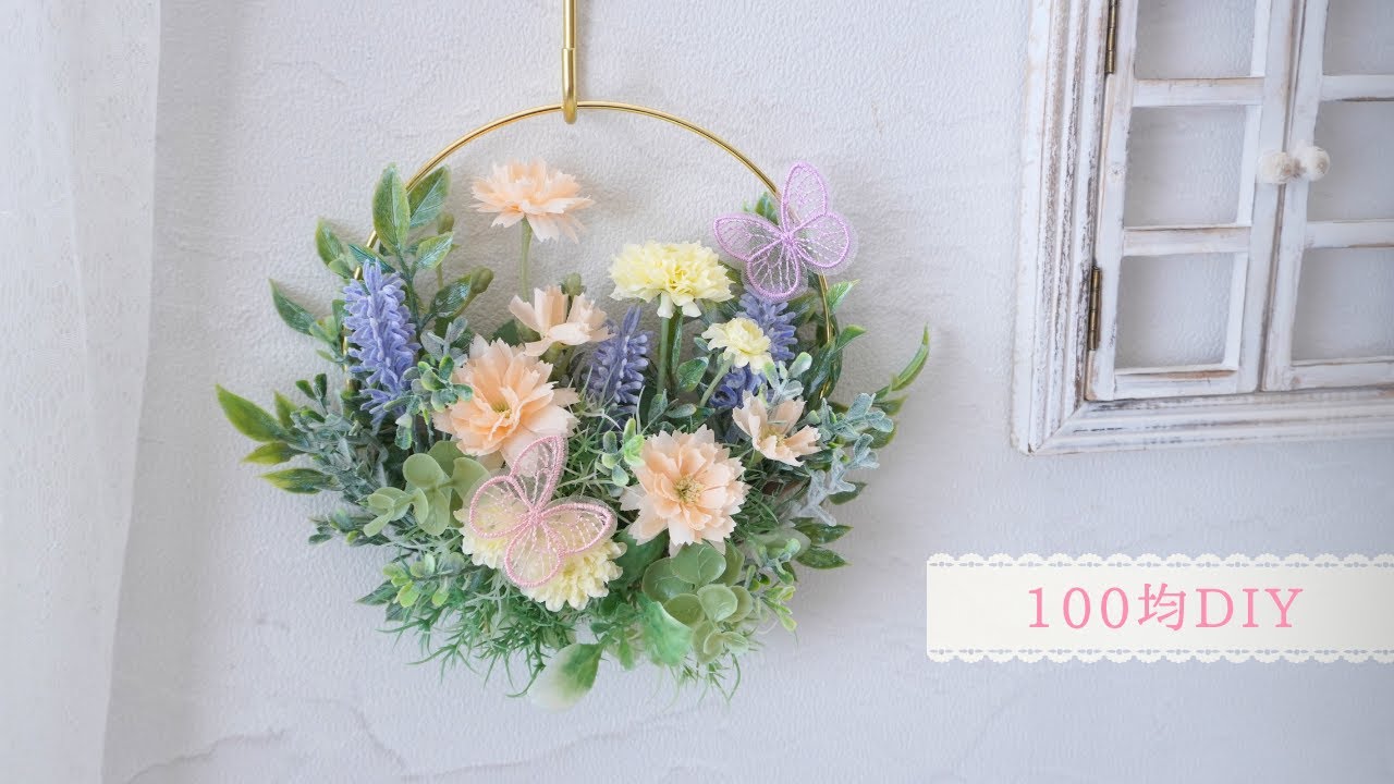 | タイトル | 【100均造花】フープリースの作り方/ワイヤ不要/グリーンマットで簡単おしゃれ/手作りインテリア |