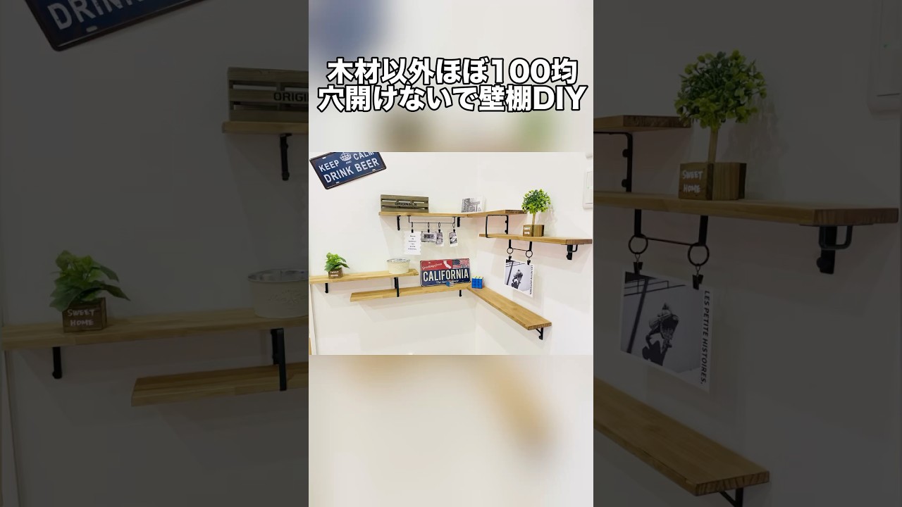 | タイトル | 【木材以外ほぼ100均】壁にキズを付けないで壁棚DIY賃貸にもおすすめ #shorts #壁棚収納 #100均diy |
