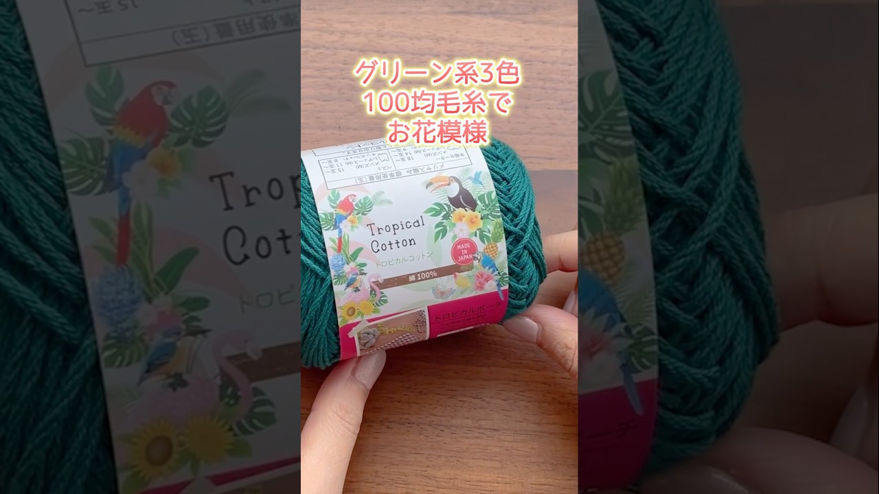 タイトルグリーン系3色100均毛糸で花模様バッグ編んでみました。かぎ針編み