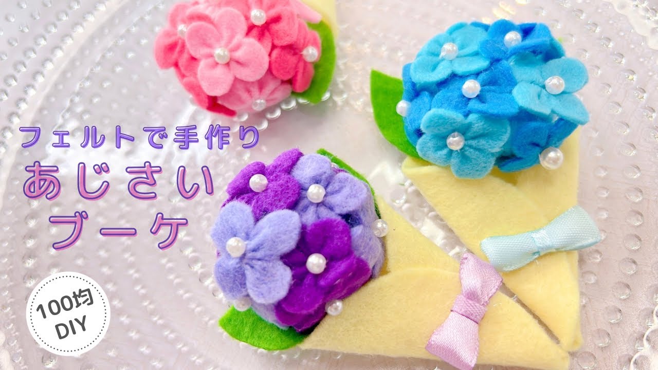【100均DIY】フェルトで手作りあじさいブーケ/hydrangea/bouquet – meke