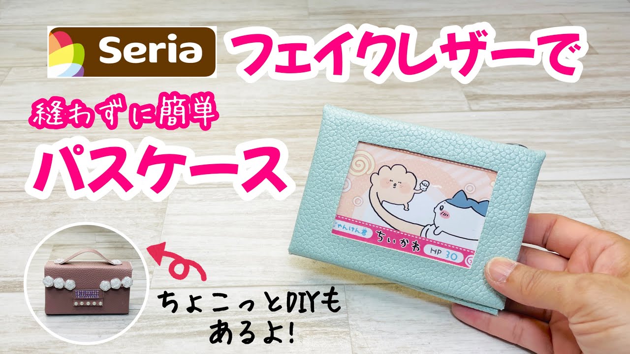 タイトル【縫わない100均DIY】Seriaのフェイクレザーで縫わずに楽々パスケース作り♪ How to make a pass case with faux leather without sewing