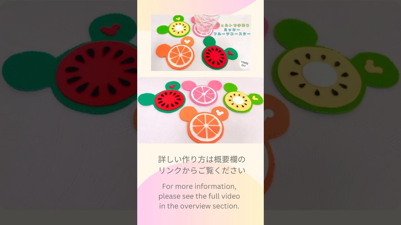 | タイトル | 【100均DIY】フェルトで手作りミッキーフルーツコースター#ミッキー#ディズニー#フェルトコースター#手作り#felt#sewing#coaster#mickey#Disney#미키#디즈니#컵받침 |