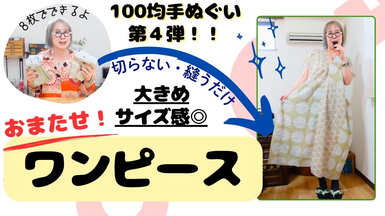 | タイトル | お待たせしました!100均手ぬぐい第4段!!切らない・縫うだけ1大きめサイズ感◎最初は、いまいち。。でも最後は、可愛くできたよ!! |