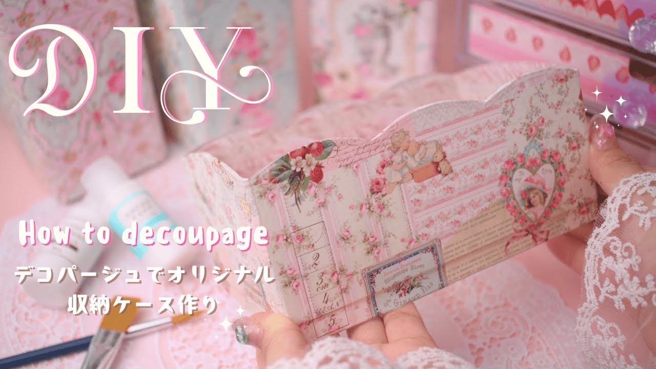| タイトル | 【簡単DIY】100均のデコパージュ液を使ってオリジナル小物入れの作り方 | デコパージュのやり方 | 収納ケースデコ | リメイク |