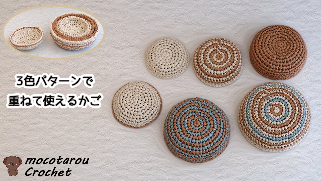 | タイトル | 3色パターンで重ねて使えるかご。かぎ針編み 100均糸 |