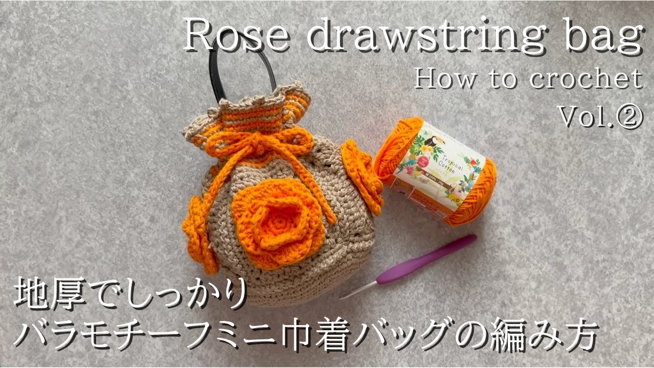| タイトル | [セリア100均毛糸でバラモチーフミニ巾着の編み方] #100均 #かぎ針編み #bag #crochet #seria # #drawstringbag #rose #motif #flower |