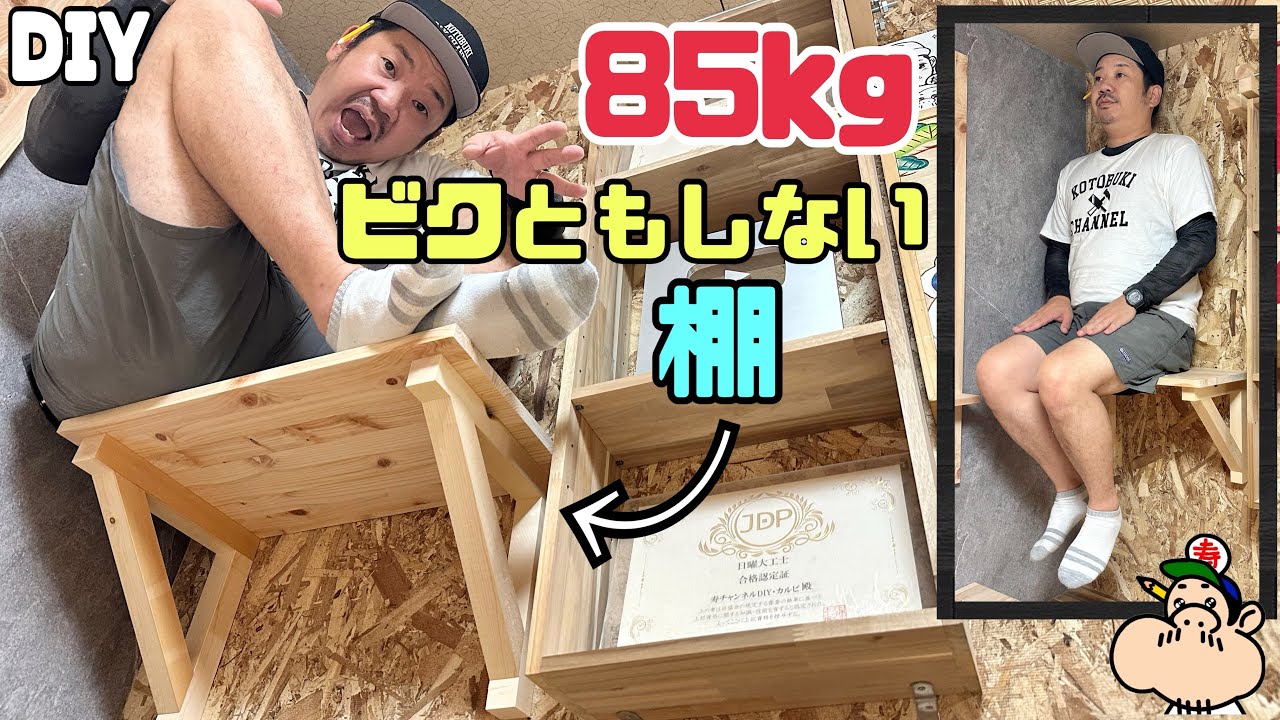 【DIY】【85kg】【棚】【強度バツグン】ビクともしない!!棚の作り方!!85kgが検証してみました!!強度バツグンになるためのポイントあります!!重たいものを乗せたい時にピッタリですよ!!#diy – 寿チャンネルDIY