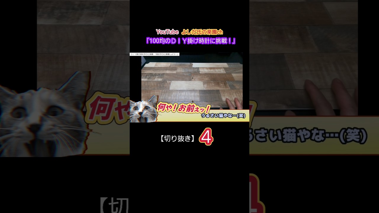 | タイトル | 【切り抜き④】「何やお前ぇーッ!!」 100均のDIY掛け時計を作るシリーズ! #切り抜き #diy #三毛猫 #ハチワレ #cat #かわいい #shorts |