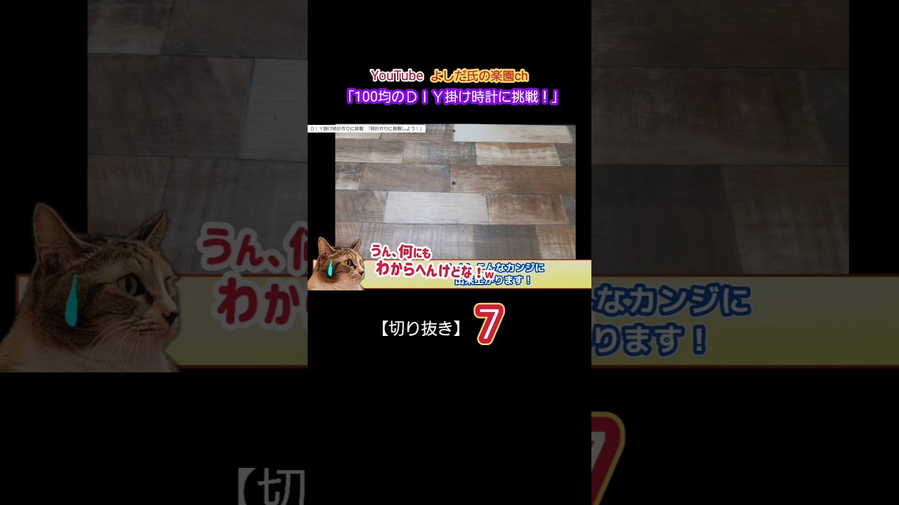 | タイトル | 【切り抜き⑦】「うん、何にもわからへん(笑)」 100均のDIY掛け時計を作るシリーズ! #切り抜き #diy #三毛猫 #ハチワレ #cat #かわいい #shorts |