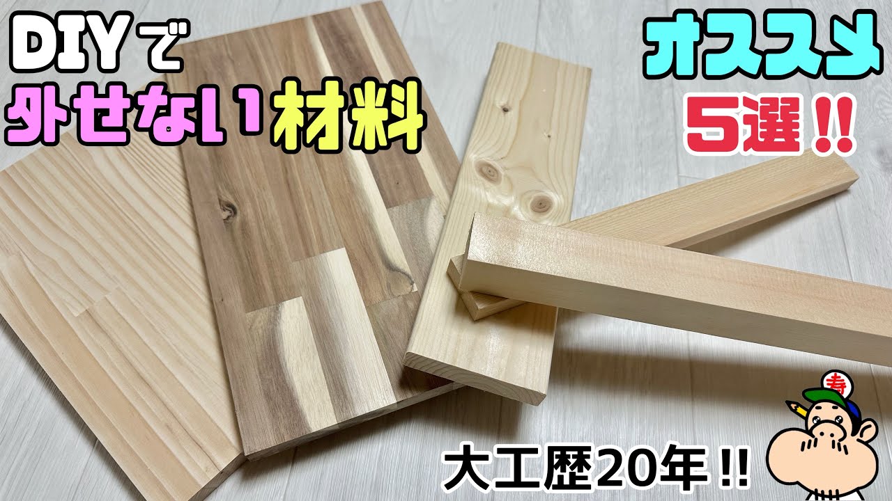 タイトル【DIY】【板】【木】【オススメ材料】YouTube歴5年で思った!!DIYで外せない材料、大工歴20年がオススメする5選!!ホームセンターで手軽に手に入る!!扱いやすい板、木です!#diy#板#大工