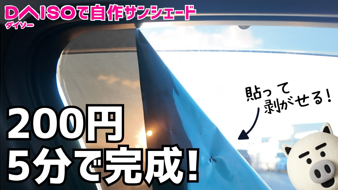 | タイトル | 【100均DIY】外から見えない車のサンシェード☀️車中泊にも使える最強フィルム!貼って剥がせるよ! |