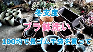 | タイトル | 【ガーデニングDIY】冬支度、100均で長ゴム手袋を購入して鉢洗い |