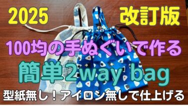 100均DIY 2025改訂版 100均手ぬぐいで作る簡単2way bag – hammy handmade life 出典:YouTube / hammy handmade life 2025.09.03 100均DIY