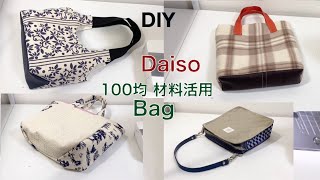 【仕切りファスナー ポーチ付き】キルト芯 バッグ ♪ seriaセリア カットクロス100均 材料 diy daily batting bag and zipper pouch – L handmade LRen